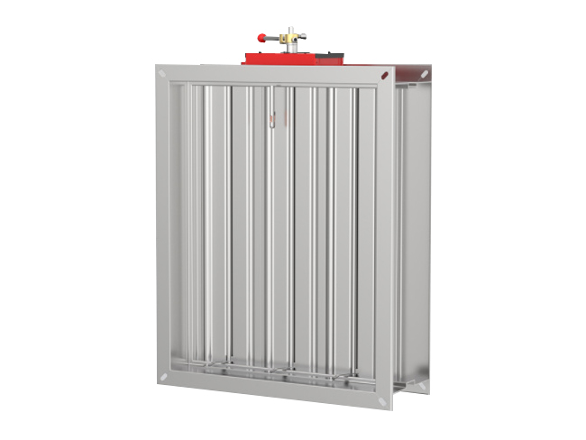 空調(diào)排風(fēng)管用通風(fēng)防火閥包括閥門架和閥板。閥板安裝在閥門架外側(cè)表面的頂部,閥板的表面固定安裝有熔斷桿,熔斷桿的一端固定安裝在閥門架的表面,閥門架的內(nèi)部安裝有固定裝置,用于在閥板密封的時候?qū)⑵滏i緊,閥板與閥門架的表面通過合頁進行安裝,閥板與閥門架的表面垂直。